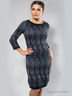 Трикотажное платье футляр прилегающего силуэта. Рукав втачной длиной 3/4. Платье имеет вырез горловины "лодочкой". Модель выполнена в сером цвете. Длина платья 95 см. Ткань - жаккардовое полотно ручной работы.