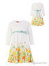 Очаровательное платье с длинными рукавами и округлым вырезом горловины. Модель с завышенной линией талии выполнено из принтованной ткани контрастной расцветки. Отличный вариант для повседневного гардероба маленькой принцессы.