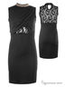 Очаровательное платье с короткими рукавами и воротником-стойкой. Воротник декорирован контрастными элементами. Спереди и сзади модель украшена вставками из гипюра. Отличный вариант для создания праздничного образа.