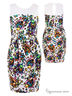 Превосходное платье приталенного покроя. Модель без рукавов с округлым вырезом горловины. Сзади - застежка на молнию. Изделие выполнено из принтованного материала контрастной расцветки. Отличный вариант для Вашей малышки.