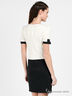 Стильное платье приталенного силуэта из плотной неэластичной ткани. Округлый вырез, короткий рукав, застежка ан молнию сзади, контрастная окантовка. Отрезная юбка контрастного цвета декорирована складками, пристроченный пояс с оригинальной пряжкой. Отличный повседневный вариант.