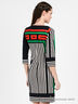 Повседневное платье приталенного силуэта из плотного эластичного трикотажа. Округлый вырез горловины, рукав 3/4, оригинальный рисунок. Отличный вариант для тех, кто ценит комфорт и качество.