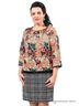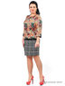 Замечательная модель полуприлегающего силуэта выполнена в сочетании двух плательных тканей. Платье отрезное ниже линии талии. Вырез горловины круглый. По переду от горловины складочки, которые украшает изысканный бантик с золотистой фурнитурой. Лиф спинки с рельефными швами и застёжкой на тесьму-молнию, декорированной тканью «лаке». Пояс платья выполнен из ткани «лаке» Рукав втачной, 3/4. Вырез горловины и низ рукава обработаны бейкой из ткани «лаке».