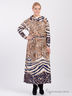 Платье в пол с длинными рукавами "летучая мышь", с оригинальным воротом, контрастный рисунок
