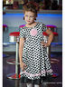 Стильное платье приталенного силуэта, расклешенного книзу. Округлый вырез горловины, короткий рукав, полочка декорирована цветком и шнуровкой по бокам, двухслойный низ с воланами и оборками.