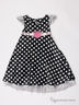 Нарядное платьице расклешенного силуэта. Округлый вырез горловины, отрезной низ изделия. Талия подчеркнута широкой атласной лентой и цветком.