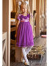 Нарядное платьице с завышенной талией. Округлый вырез горловины, короткий рукав-фонарик, полочка декорирована цветами, низ изделия декорирован оборками.