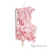 Нежное, атласное платье с округлым вырезом горловины. Полочка декорирована стразами. Отрезная юбка выполнена из множества воланов.