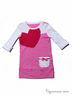 Детали: округлый вырез горловины, накладной кармашек с бантиком, на полочке яркая нашивка в форме сердца.