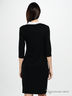 Оригинальное платье придаст Вашему образу изысканности и очарования. Прямой крой. Тонкая трикотажная ткань. Прямой рукав три четверти. Контрастный ворот-хомут, переходящий в планку полочки.