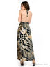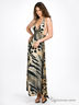 Платье с набивным рисунком. Отрезной лиф на бретелях,завязывающихся на шее. Завышенная линия талии. Пояс посажен на многорядную резинку.