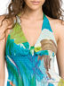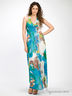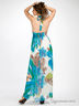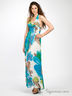 Платье шифоновое с набивным рисунком. На подкладке. Отрезной лиф на бретелях, завязывающихся на шее. Завышенная линия талии. Пояс посажен на многорядную резинку.