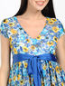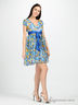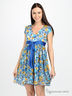 Легкое, воздушное летнее платье создаст ощущение свежести и непринужденности. Из тонкой шифоновой ткани. Расклешенного силуэта с завышенной талией. Короткий рукав. V- образный вырез горловины. Застегивается на молнию сбоку. На поясе контрастная атласная лента, завязывающаяся спереди. Юбка присборена у основания изделия. Белый шифоновый подклад.