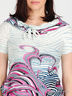 Детали: воротник-хомут, капюшон на кулиске, короткие рукава, талия посажена на мелкие резиночки