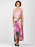Детали: V-образный вырез с запахом, с тонкими бретельками завязывающимися на спинке, ассиметричная расклешенная юбка с запахом, изящное декоративное украшение на поясе.