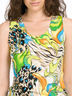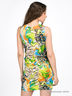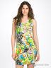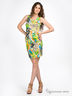 Цельнокроеное платье из мягкой вискозы. Без рукавов. Округлый вырез. Прямой крой. Декорировано ярким набивным рисунком.