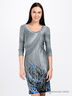 Стильное платье слегка приталенного силуэта подойдет как для офисного стиля, так и для повседневной носки, придав Вашему образу нотку романтичности. Приятная на ощупь трикотажная ткань. Прямой рукав три четверти. Округлый вырез горловины с вставкой из трикотажной ленты. Низ платья декорирован оригинальным набивным рисунком.
