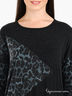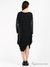 Детали: округлый вырез горловины, длинный прямой рукав, оригинальный крой низа изделия