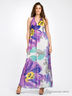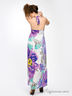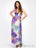 Платье шифоновое с набивным рисунком. На подкладке. Отрезной лиф на бретелях, завязывающихся на шее. Завышенная линия талии. Пояс посажен на многорядную резинку.