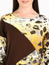 Детали: округлый вырез горловины, длинный рукав, оригинальный крой низа изделия, декоративная контрастная вставка на полочке.