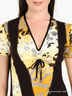 Детали: v-образный вырез горловины, короткий прямой рукав, декоративные контрастные вставки