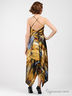 Детали: глубокий V-образный вырез горловины, отрезной лиф на кулиске со шнурком, застежка на молнию сзади, струящаяся ассиметричная юбка.