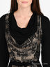 Детали: округлый вырез горловины с напуском, эффект двойки, в пояс продет шнурок, низ изделия на завязках