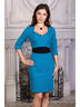 Платье из плотного трикотажного полотна. Приталенный силуэт, втачной рукав длиной 3/4. Полочка декорирована вставкой-веером, контрастный фигурный пояс. Длина по спинке 88-99 см. в зависимости от размера.