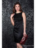 Классическое платье-футляр без рукавов. Выполнено из атласа. Лиф выполнен из атласного кружевного полотна. Линия талии завышена и декорирована изящным бантиком. Сзади застёгивается на молнию, имеется шлица. Длина по спинке 89-93,5 см. в зависимости от размера.
