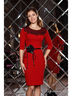Яркое платье из трикотажа, сильно прилегающего силуэта. Платье декорировано эффектным кружевным воротником и дополняется женственным поясом-цветком, входящим в комплект. Длина по спинке 90-95 см в зависимости от размера.