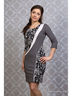 Платье из плотного трикотажа, сильно прилегающего силуэта. Декорировано изделие контрастными вставками и кантом. Втачной рукав 3/4. Длина по спинке 89-103 см. в зависимости от размера.
