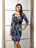 Платье из плотного трикотажного полотна с геометрическим принтом, облегающего силуэта. Линия талии на спинке и полочке подчёркнута вставками из искусственной кожи. Длина по спинке 90-98 см в зависимости от размера.