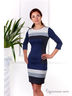 Платье из плотного трикотажа, сильно прилегающего силуэта. Модель с втачными рукавами 3/4 и округлым вырезом горловины. Декорировано контрастными вставками по полочке. Длина по спинке от 87 до 101 см. в зависимости от размера.