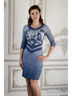 Платье из мягкого трикотажного жаккарда. Модель сильно прилегающего силуэта, втачные рукава длиной 3/4. Горловина, пояс и низ рукавов декорированы контрастными вставками. Длина по спинке 86-93 см. в зависимости от размера.
