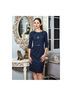 Платье для офиса из костюмной ткани. Прямой покрой, приталенное, отрезное по талии, по боковым швам - карманы. Втачные рукава, длиной 3/4. На полочке по линии горловины складки. Застёгивается на молнию по спинке, имеется шлица. Ремень в комплекте. Длина по спинке 98-102 см. в зависимости от размера.