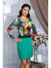 Элегантное платье из плотного трикотажа, с ярким цветочным принтом верха, с немного заниженной талией и юбкой-тюльпан. Линия талии декорирована кружевом, вырез горловины - кантом. Эта модель не рекомендована обладательницам пышных бёдер. Длина по спинке 87-93 см в зависимости от размера.