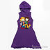 Трикотажное платье с капюшоном. Без рукавов. Расклешенная юбка. На полочке яркая ворсовая нашивка.