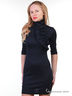 Очаровательное платье с короткими рукавами и воротником-стойкой. Модель приталенного кроя выполнена из качественного материала привлекательной расцветки. Спереди - рюши. Отличный вариант на каждый день.