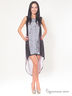 Платье женское комбинированное полуприлегающего силуэта без рукавов. Низ изделия фигурный разной длины. Спинка - из трикотажного полотна, перед- из плательной ткани с декоративной перфорированной накладкой. Длина спинки - 115 см, переда - 83 см.