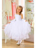 Прелестное детское платье. Модель на тонких бретелях. Декорирована шифоновыми рюшами по всей длине. Нарядный вариант для вашей принцессы.
