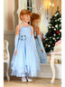Прелестное детское платье. Модель на тонких бретелях. Декорирована шифоновыми рюшами по всей длине. Нарядный вариант для вашей принцессы.