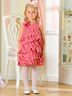 Платье из жоржета. Удобная кокетка на пуговице с навесными петлями. Настроченные продольные воланы создают пышный струящийся силуэт. Декорировано большим цветком ручной работы. Подкладка из вискозного трикотажа.