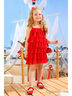 Замечательное платье из воланов для исполнения заводного чарльстона на балу. Модель на тонких бретелях декорирована цветком. Прекрасный вариант для детского гардероба.