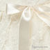 Платье из жатого хлопка с вышивкой декорировано бантиками. Застегивается на молнию сзади. Рукав фонарик. Подкладка выполнена из тонкой хлопчатобумажной ткани.