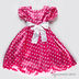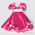 Нарядное платье из гладкого атласа с оригинальным принтом - горох. Декорировано белыми атласными бантиками и белым атласным поясом.