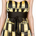 Яркое платье-бюстье на тонких бретелях из легкой ткани. Чёрный атласный пояс на слегка завышенной талии подчёркнёт Вашу грудь, а красочная чёрно-жёлтая расцветка привлечёт восхищённые взоры всех окружающих мужчин.