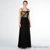 Вечернее декольтированное платье для любого торжества на тонких лямках, цвет юбки чёрный, лиф молочного цвета отделан тонким чёрным шифоном, декоративный крупный бант на груди.
