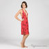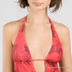 Пляжное платье яркого красно-кораллового цвета с принтом. Завязывается на шее на тонкие завязки. Красиво открытая спина. Треугольные чашечки с тонким уплотнителем. Выполнено из эластичного, приятного на ощупь материала.