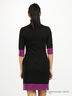 Очаровательное платье из приятного на ощупь трикотажа стильного черного цвета. Широкий воротник стойка. Короткие рукава. Застежка на незаметную молнию на спинке. Изделие декорировано оригинальными контрастными вставками. Комфортная и уютная модель прекрасно подойдет активным женщинам.