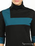 Очаровательное платье из приятного на ощупь трикотажа стильного черного цвета. Широкий воротник стойка. Короткие рукава. Застежка на незаметную молнию на спинке. Изделие декорировано оригинальными контрастными вставками. Комфортная и уютная модель прекрасно подойдет активным женщинам.